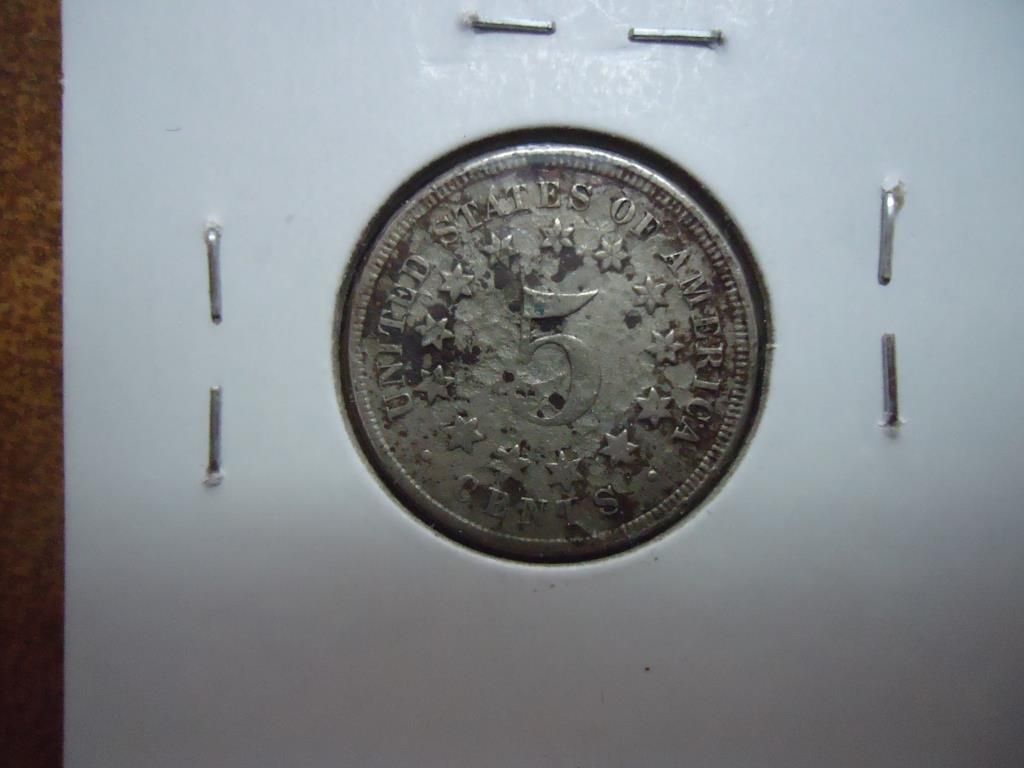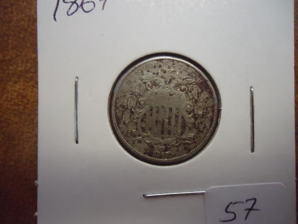 1867 SHIELD NICKEL WITHOUT RAYS FINE (PITTED)