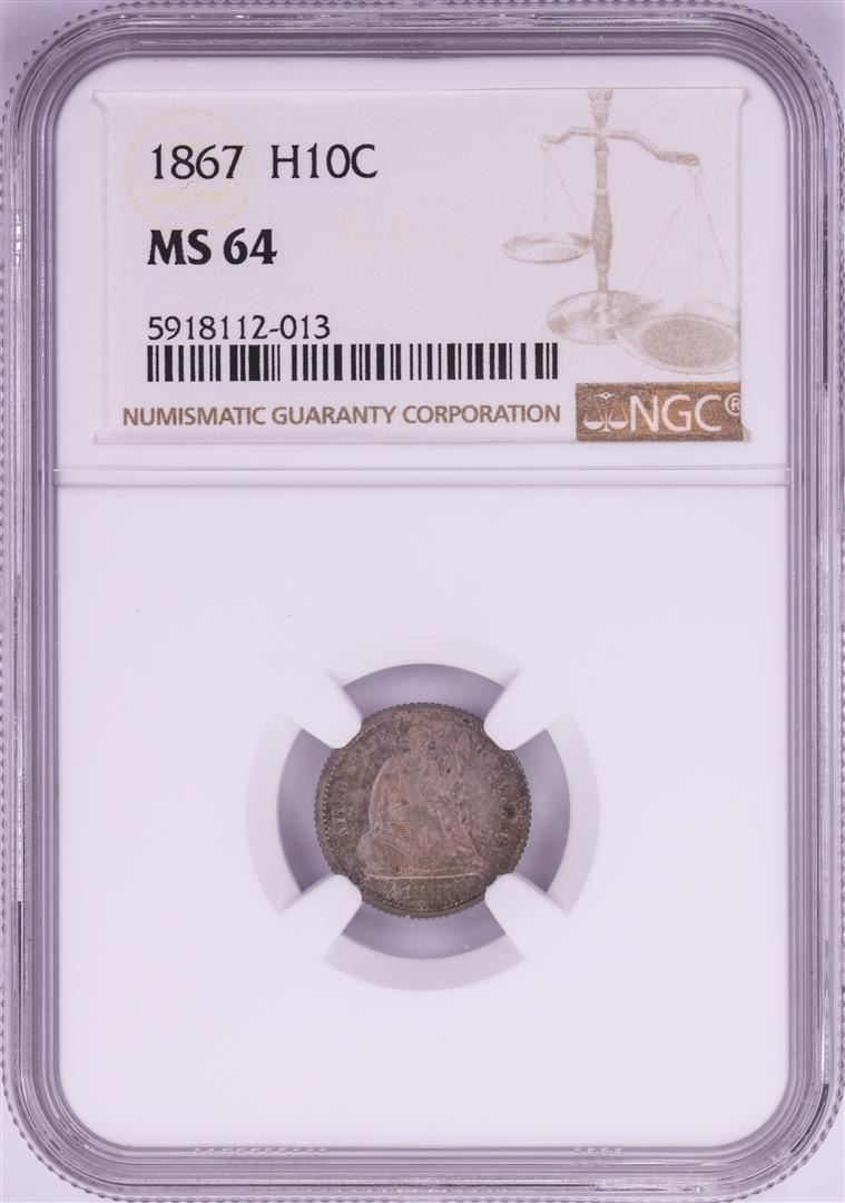 One 1867 Seated Liberty Half Dime Coin NGC MS64. NGC Certified.