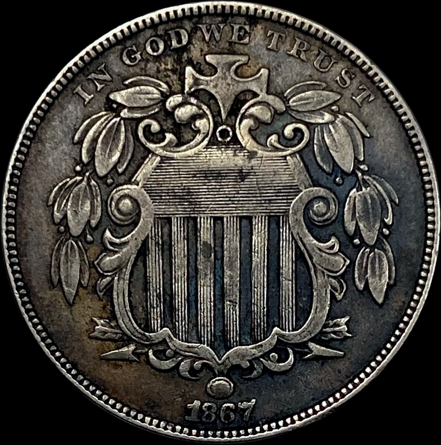 1867 Shield Nickel NEARLY UNCIRCULATED