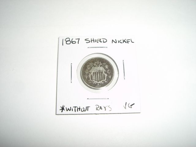1867 Shield Nickel Nickel WITHOUT RAYS *VERY GOOD GRADE*!! ***Coin, Currency & All Items Listed in this auction - Grades, Conditions and Values are not Safe Deposit Coins LLC Responsibilty. Grades, Condition and Values are determined by Consigner(s) & Buyers ONLY***
