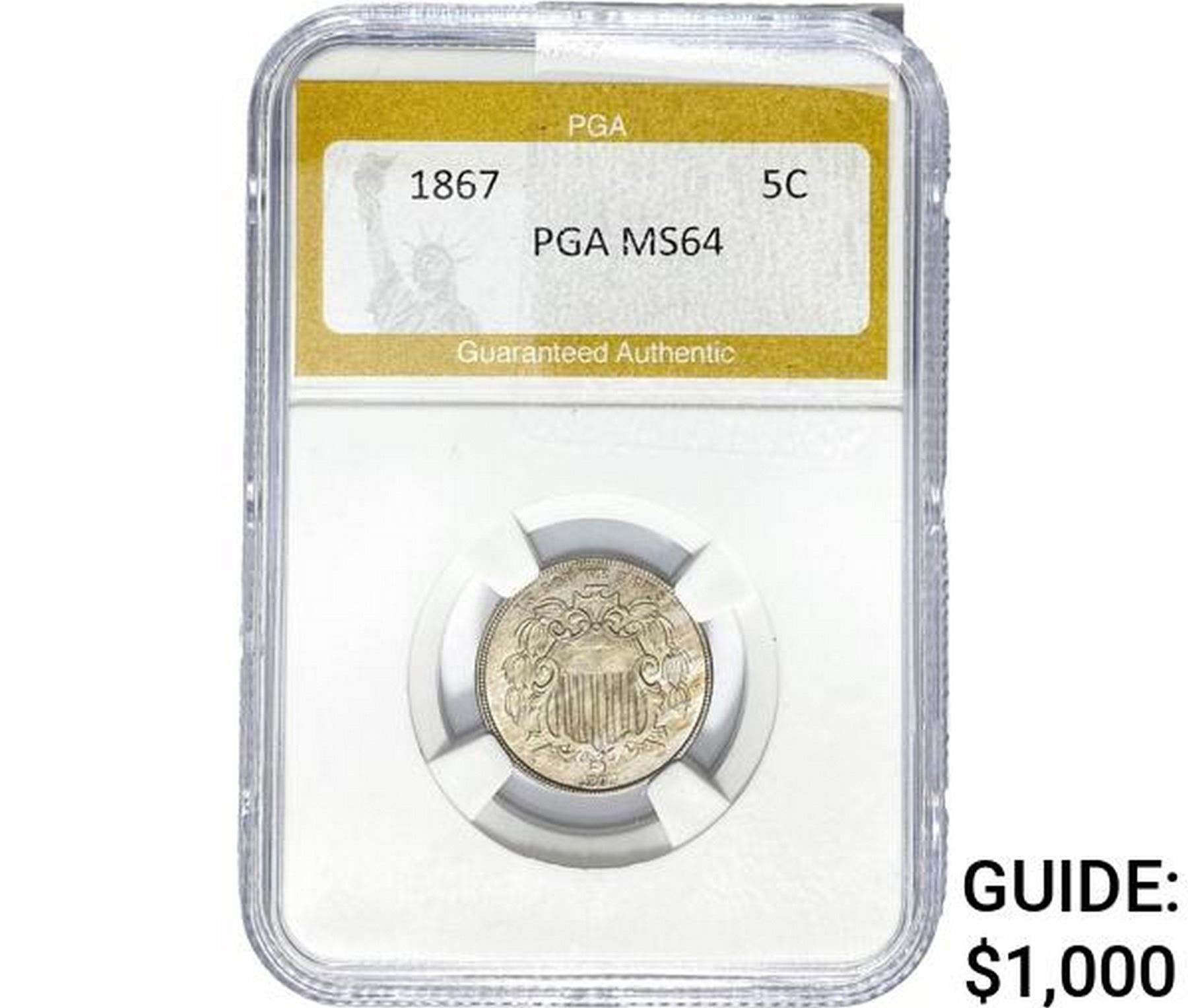 1867 Shield Nickel PGA MS64