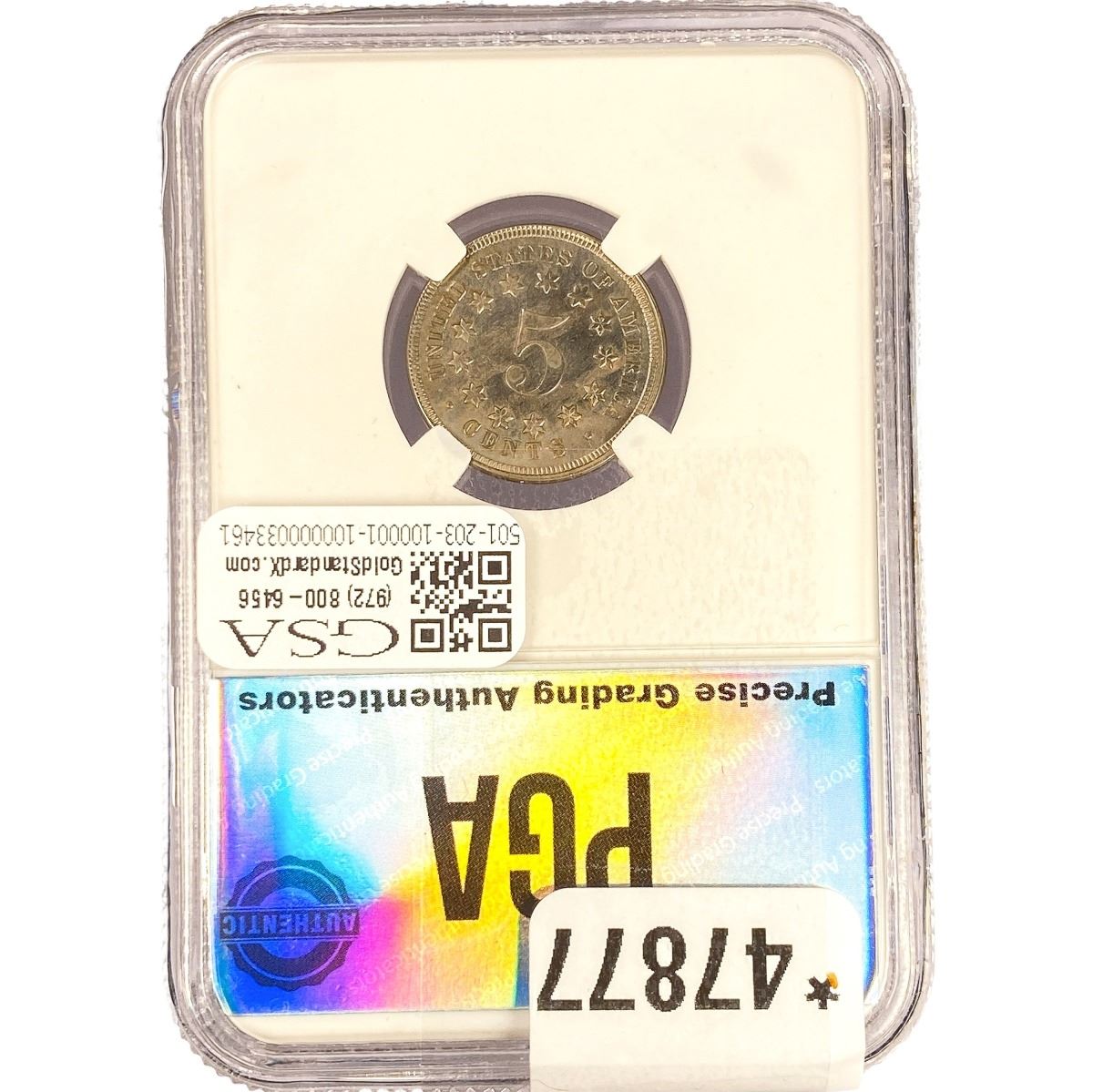 e. Coins sold referencing a third-party grading service are sold “AS IS” without any express or implied warranty, except for a guarantee by GSA that they are genuine. Removal or alteration of the holder, voids all of Bidder’s claims concerning that Product. Certain warranties may be available from the grading services and Bidders are referred to them for further details: Numismatic Guaranty Corporation (NGC), PO Box 4776, Sarasota, FL 34230, www.ngccoin.com/services/writtenguarantee.asp; Professional Coin Grading Services (PCGS), PO Box 9458, Newport Beach, CA 92658, www.pcgs.com/guarantee.html; ANACS, 6555 S. Kenton St., Ste. 303, Englewood, CO 80111; and Independent Coin Grading Co. (ICG), 7901 East Bellview, Ave., Suite 50, Englewood, CO 80111.