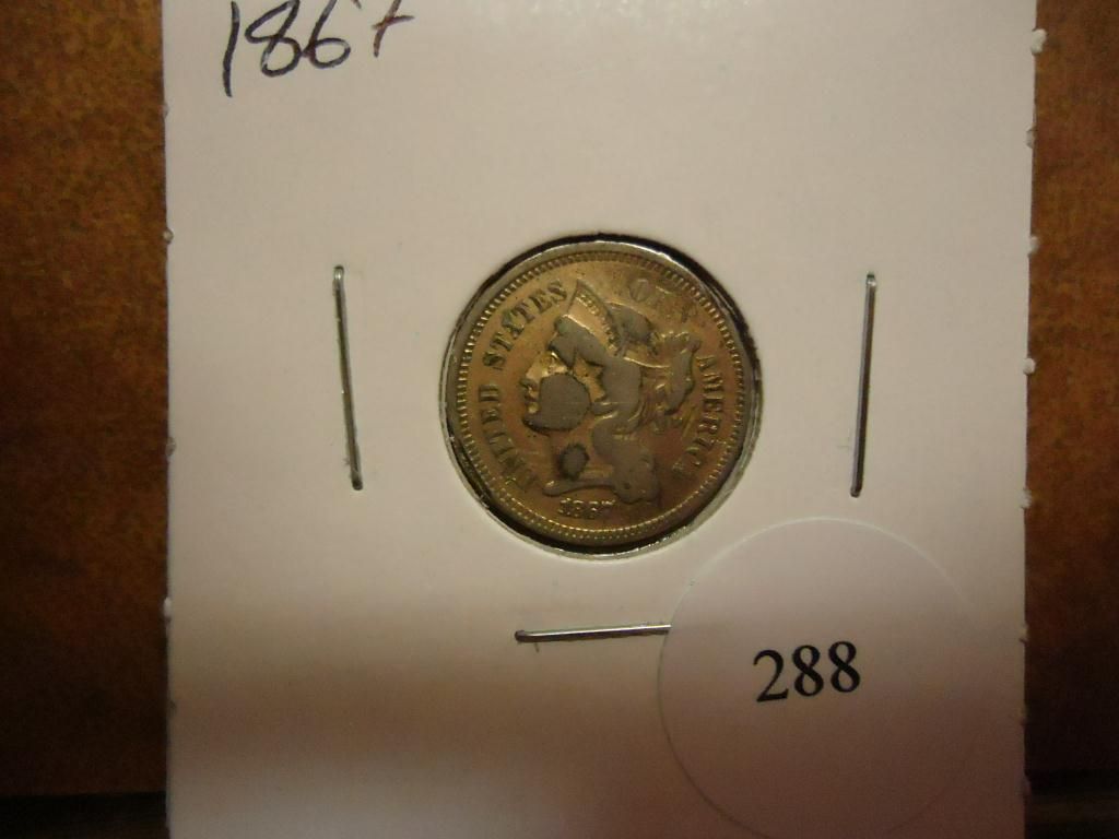 1867 THREE CENT PIECE (NICKEL) WITH GOLD PAINT