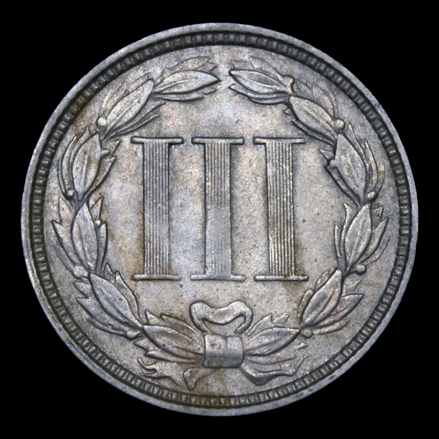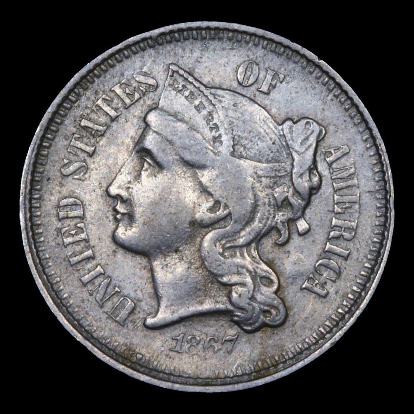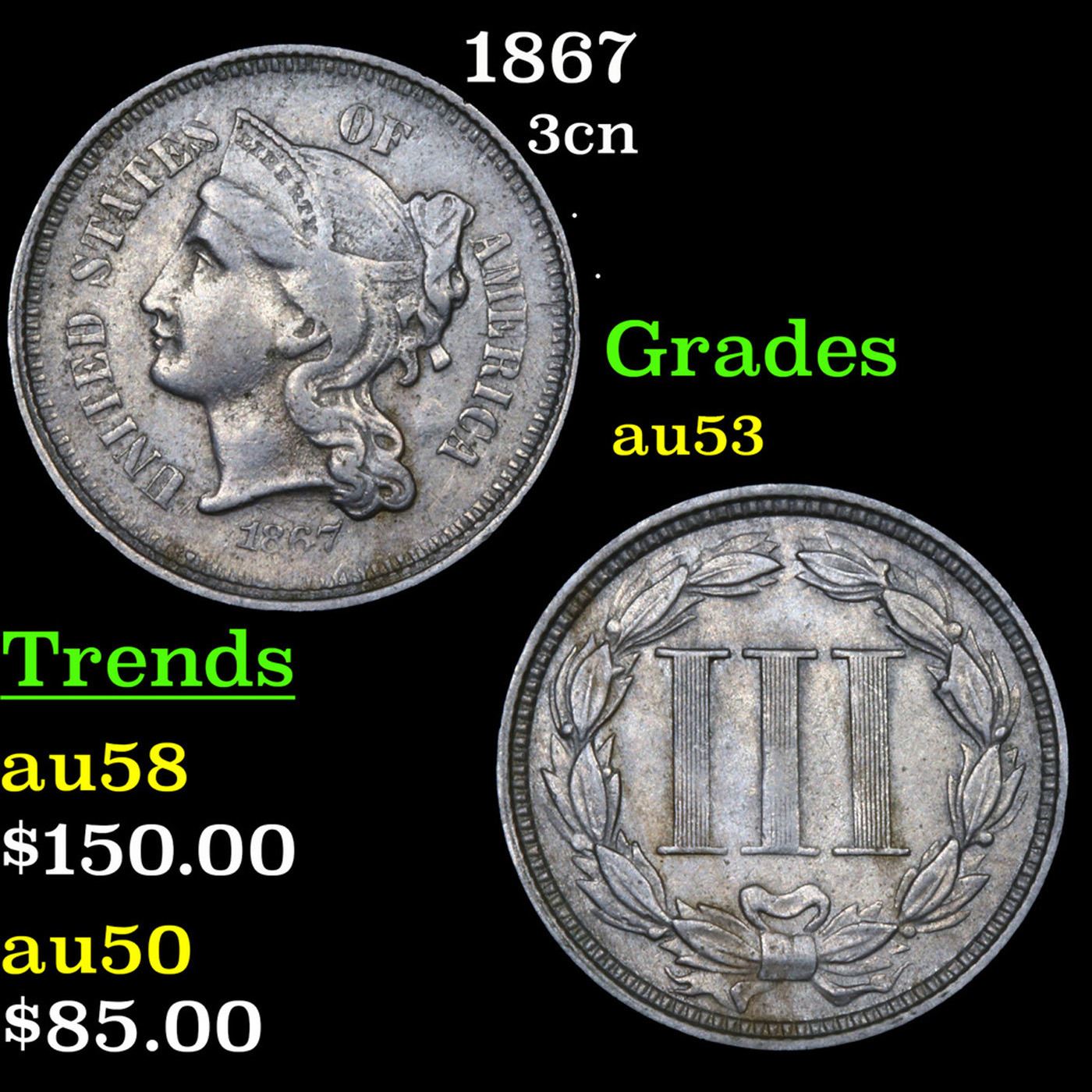 1867 Three Cent Copper Nickel 3cn Grades Select AU.