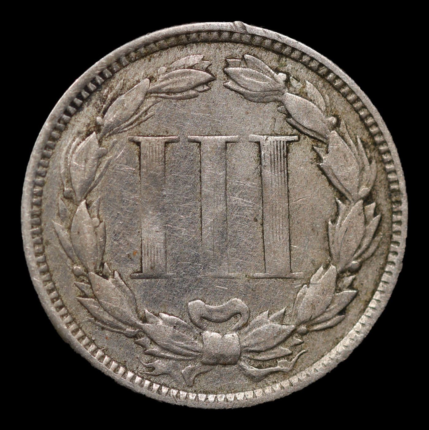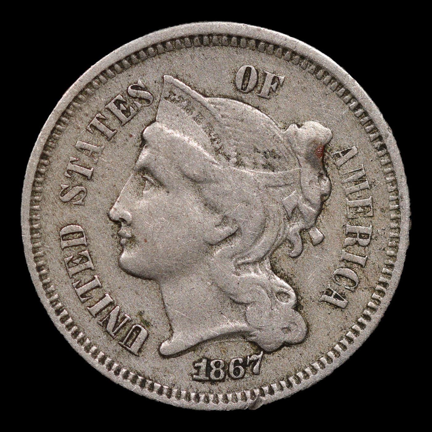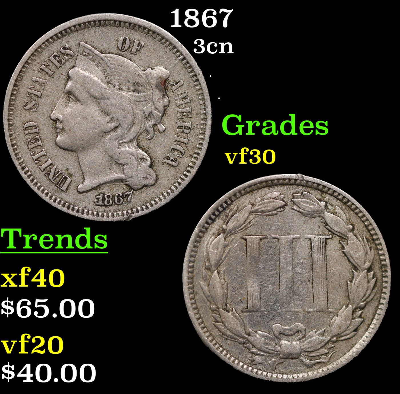 1867 Three Cent Copper Nickel 3cn Grades vf++.