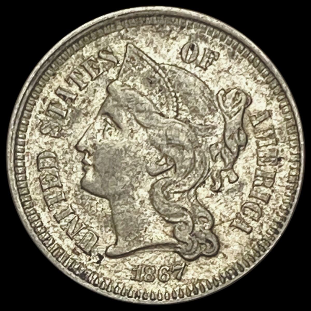 1867 Three-Cent Nickel CLOSELY UNCIRCULATED CLOSE