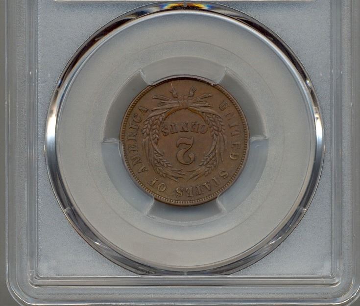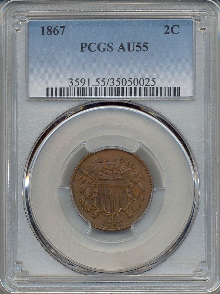 One 1867 Two Cent Coin PCGS AU55.
