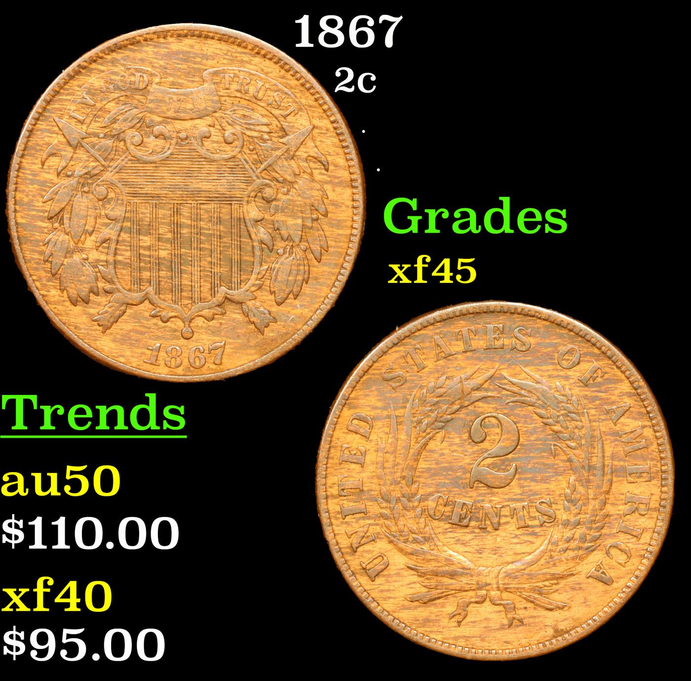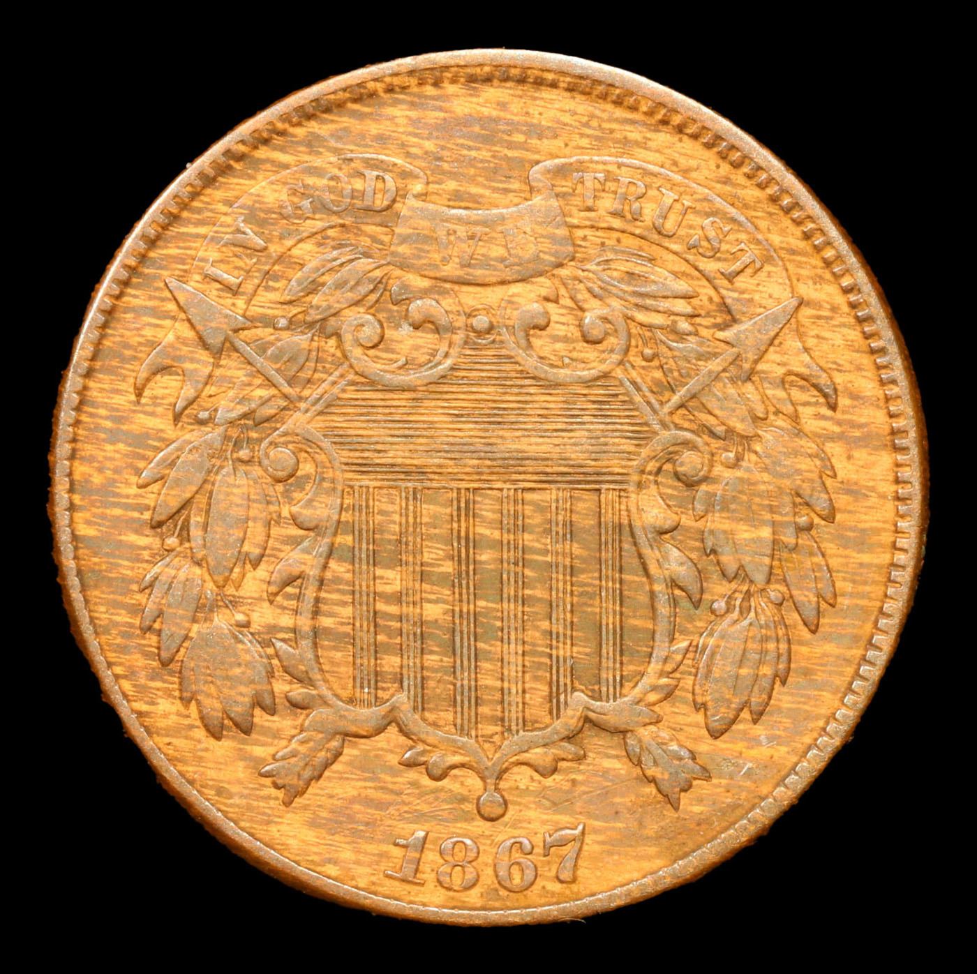 1867 Two Cent Piece 2c Grades xf+.