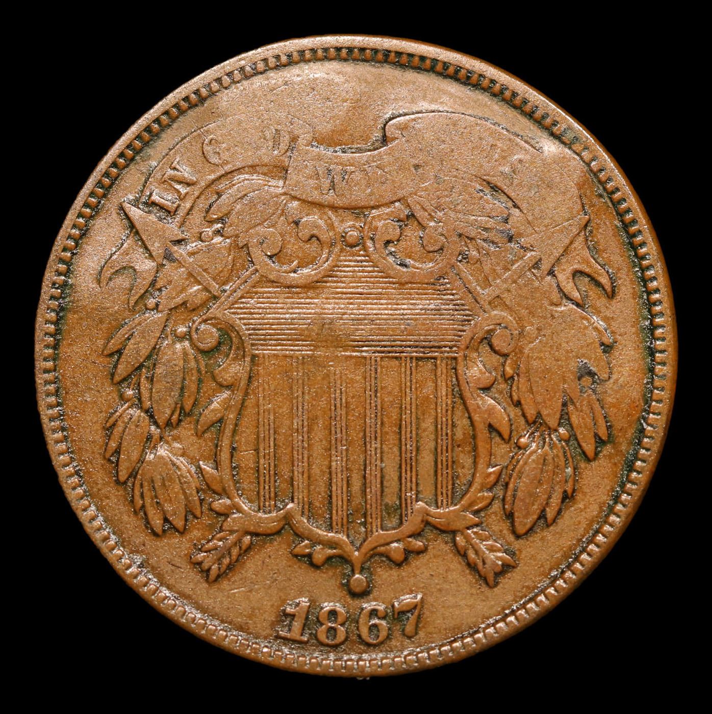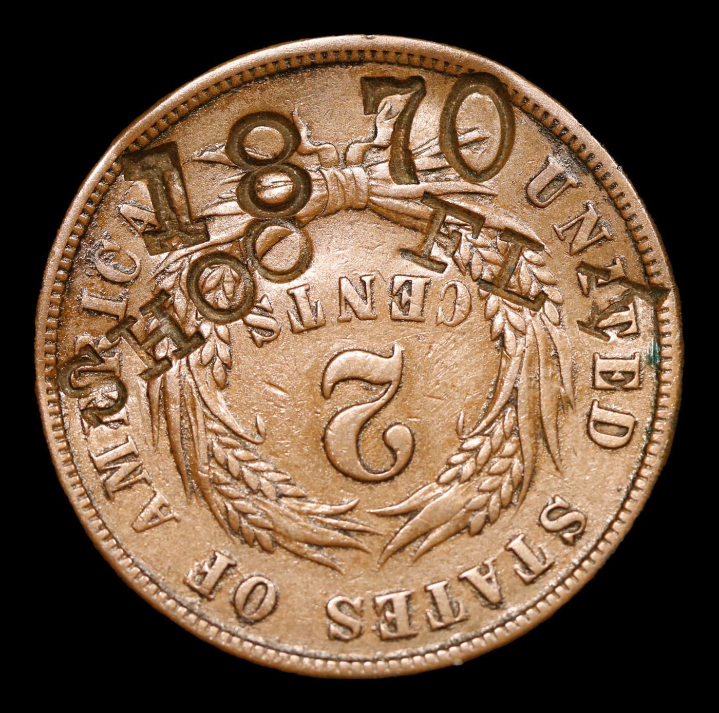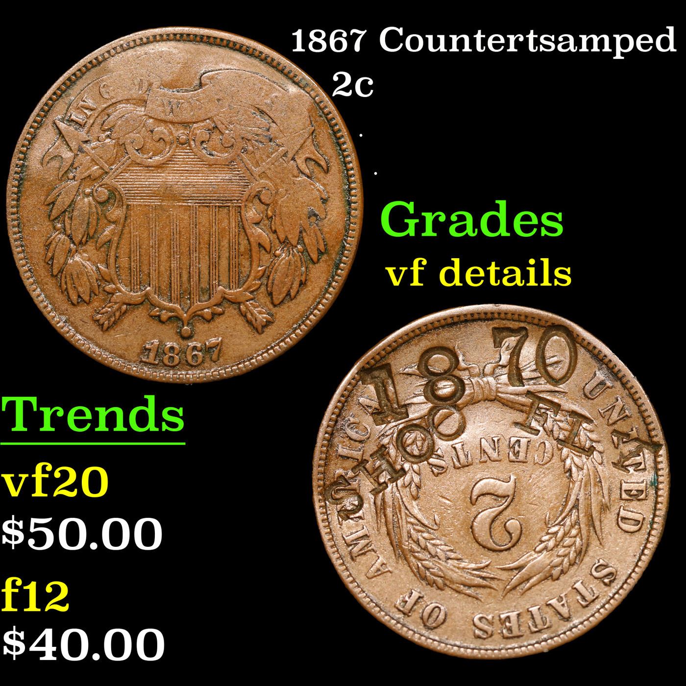 1867 Countertsamped Two Cent Piece 2c Grades vf details.