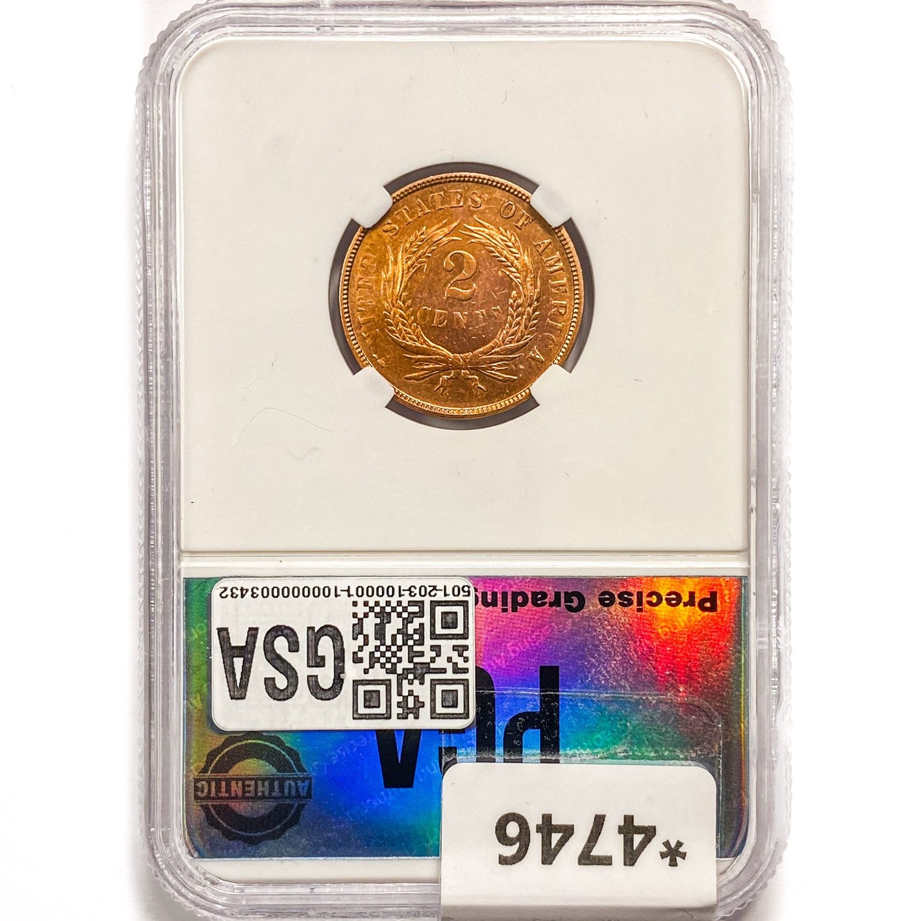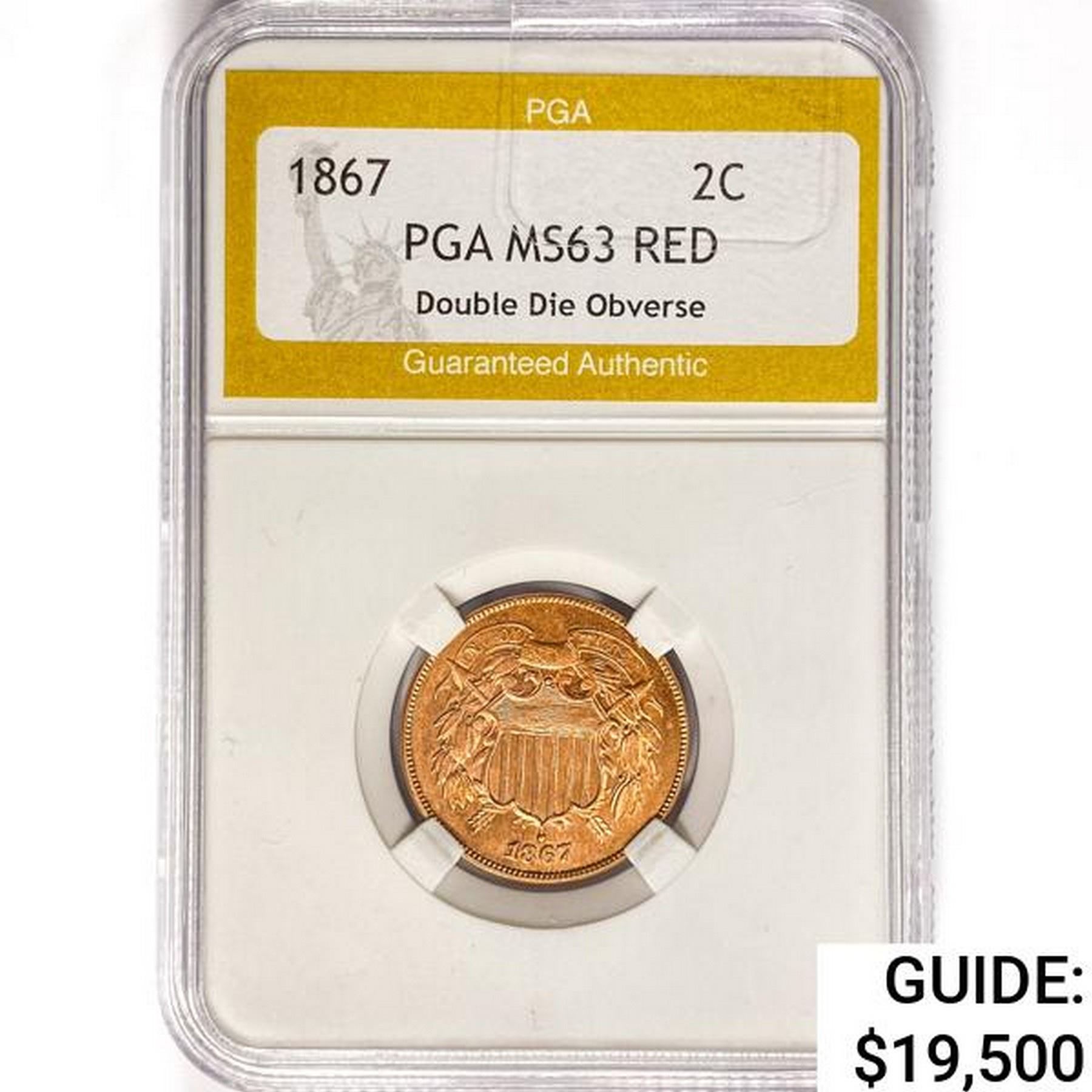 1867 Two Cent Piece PGA MS63 RED, DDO