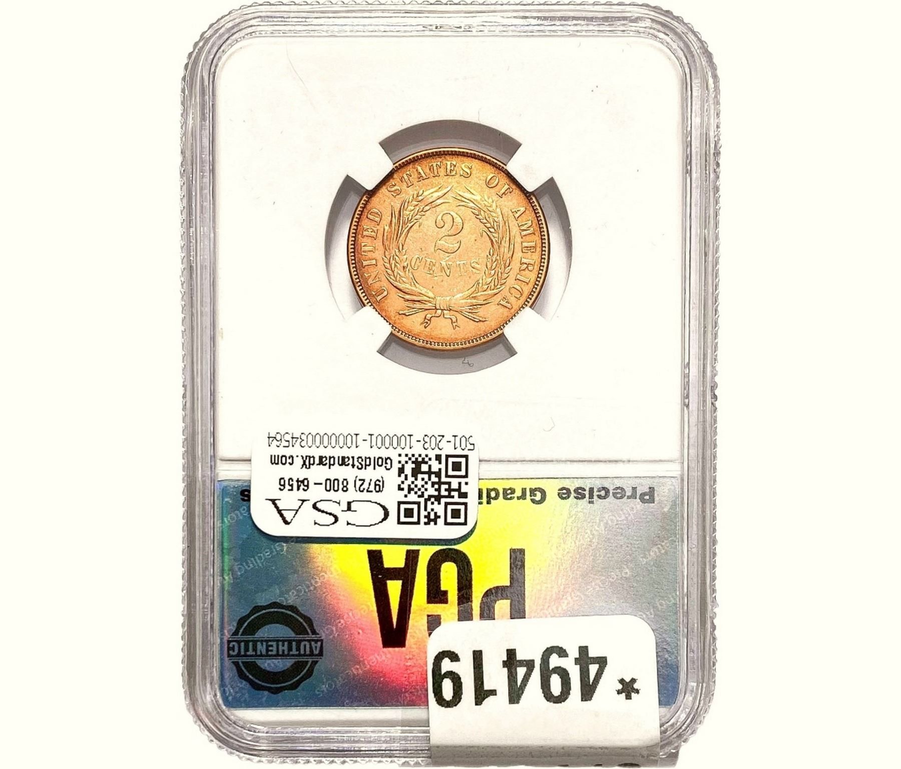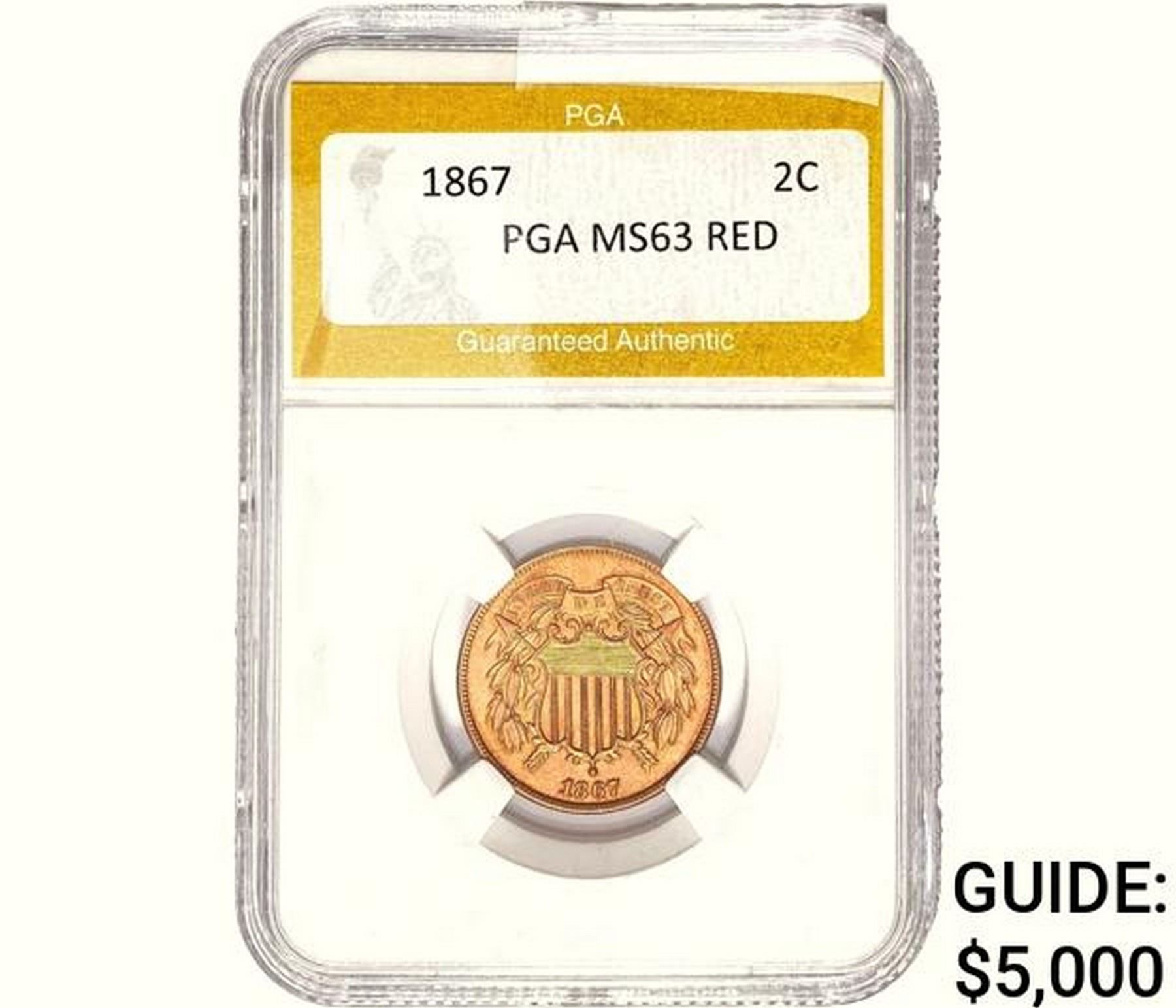 1867 Two Cent Piece PGA MS63 Red