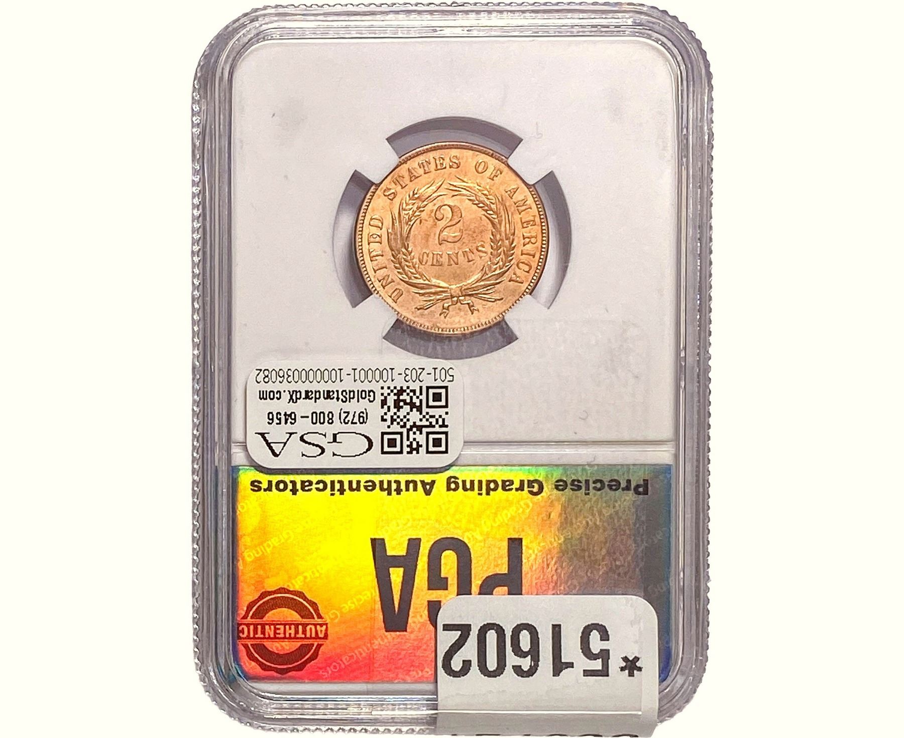 l. All non-certified coins and currency are guaranteed genuine, but are not guaranteed as to grade, since grading is a matter of opinion, an art and not a science, and therefore the description rendered by GSA or any third-party grading service may not agree with the opinion of others (including trained experts), and the same expert may not grade the same item with the same grade at two different times. GSA may, but is not obligated to, express an opinion as to non-certified numismatic items, in GSA’s opinion, or by its employees’ experience and the current interpretation of the American Numismatic Association’s standards as of the date the catalog was prepared. There is no guarantee or warranty expressed or implied that the grading opinions utilized by GSA, if any, will meet the standards of any grading service at any time in the future.