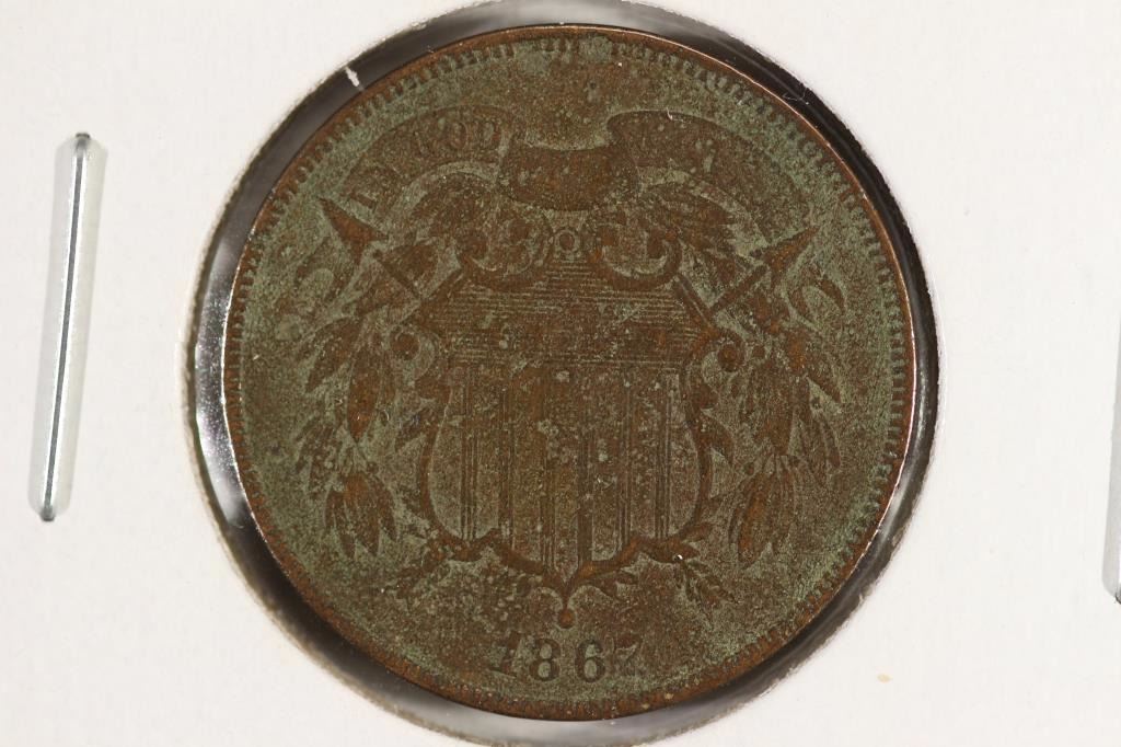1867 US TWO CENT PIECE WITH VIRDIGRIS