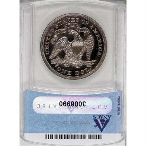<B>1868 $1 PR62 ANACS.</B></I> Minimally contrasted on each side with a chromelike sheen overall. This boldly impressed proof has numerous light hairlines in the pewter-gray fields and shows scattered contact away from the devices.<BR><BR><B>Coin Engraver:</B> Christian Gobrecht<BR><BR><b>Shipping:</b> Coins & Currency (<a target="_blank" href="http://www.heritageauctions.com/common/shipping.php">view shipping information</a>)
