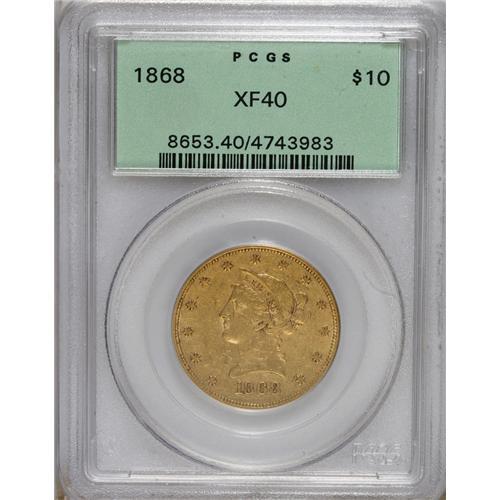 1868 $10 XF40 PCGS. This is a scarce date from a minta