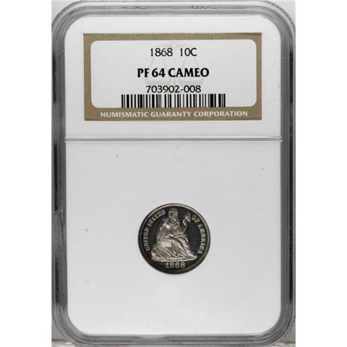 1868 10C PR64 Cameo NGC. Well struck with frosted devi