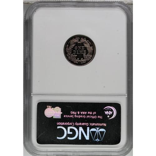 <B>1868 10C PR64 Cameo NGC.</B></I> Well struck with frosted devices and watery fields. Lovely plum toning lies across the reverse and near the lower and left obverse borders. Contact-free with a few faint hairlines on each side. Census: 10 in 64 Cameo, 9 finer (2/07).<BR><BR><b>Shipping:</b> Coins & Currency (<a target="_blank" href="http://www.heritageauctions.com/common/shipping.php">view shipping information</a>)