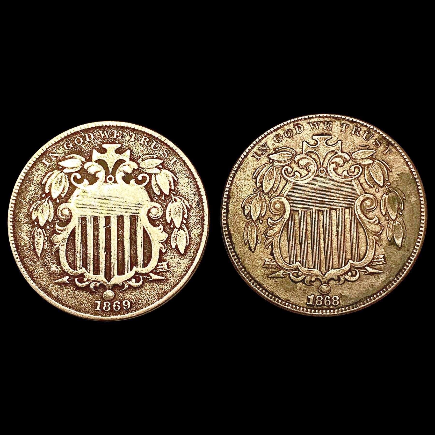 1868-1869 [2] Shield Nickel LIGHTLY CIRCULATED