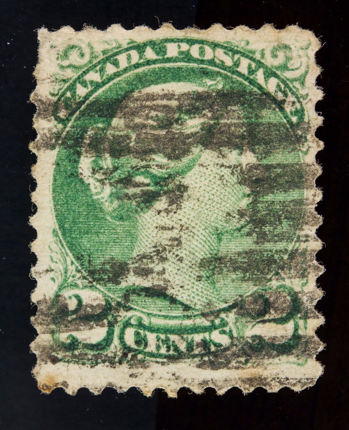 Canada small 2 cents error stamp; double side print; extremely rare; 1868-1870