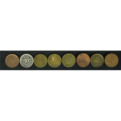 <B>(1868-1877) Uncertified Lot of Merchants Tokens.</B></I> All are Uncirculated. Includes two tokens issued by Parmelee, Webster & Co., NY-NY-243a (copper) and NY-NY-243c (white metal); and six tokens issued by Issac F. Wood, all of which have the same bust of Grant with different reverses.