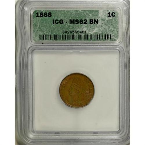 <B>1868 1C MS62 Brown ICG.</B></I> NGC Census: (31/102). PCGS Population (14/66). Mintage: 10,266,500. Numismedia Wsl. Price for NGC/PCGS coin in MS62: $225. (#2091)<BR><BR><B>Coin Engraver:</B> James B. Longacre<BR><BR><b>Shipping:</b> Coins & Currency (<a target="_blank" href="http://www.heritageauctions.com/common/shipping.php">view shipping information</a>)