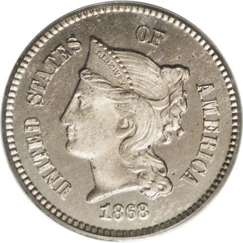 <B>1868 1C Coronet Cent, Judd-608, Pollock-673, R.4, PR65 PCGS.</B></I> On the obverse, Liberty is wearing a coronet inscribed LIBERTY. Around, the legend UNITED STATES OF AMERICA and below, the date. The reverse has a large Roman numeral I enclosed within a wreath of wheat, corn, tobacco, and cotton. Struck in nickel with a plain edge. This is Pollock's high date variety, considered by him to be slightly scarcer than the centered date variety. This piece has pale champagne toning over attractive surfaces with mirrored fields and lustrous devices. A few slight carbon flecks limit the grade. Housed in an older green-label PCGS holder.<BR><I>From The Jones Beach Collection.</B></I><BR><BR><b>Shipping:</b> Coin/Currency (<a target="_blank" href="http://www.heritageauctions.com/common/shipping.php">view shipping information</a>)