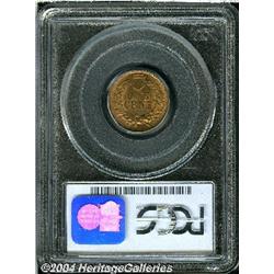 <B>1868<1C> MS64 Red PCGS.</B></I> Well struck with purple-red color near the center of the obverse, golden-red toning elsewhere, gleaming luster, and a few trivial contact marks. Population: 52 in 64, 30 finer (9/04).<BR><I>From The Rafael Romero Collection.</B></I> <BR><BR><B>Important notice:</B> Heritage usually auctions material at the rate of 200-250 lots per hour. On some occasions eBay Live bid software or the Internet may not be able to keep up with the pace of the auction. We recommend placing a realistic absentee bid now as insurance to avoid disappointment. Occasionally the auctioneer may eliminate or reject an eBay Live bid, and the auctioneer may also reopen a lot after the close of the eBay live bidding (usually because we missed an audience bid), and may reject your bid even if it shows you as the winning bidder. By bidding via eBay Live, you agree that Heritage may award the lot to another bidder at its sole discretion under the circumstances described above or any other reasonable circumstances. Since eBay bids are not shown to us until we open the lot on the floor, we treat those bids just like floor bids. In most cases the floor responds before the eBay bid is presented to us, due to Internet lag time, so for consistency we have made it a policy that floor bids are always considered first over tie eBay live bids. Also please note that all Heritage lots purchased through eBay Live carry a 20% Buyer's Premium. Please make sure you read the Terms and Conditions before you bid.