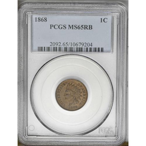 <B>1868<1C> MS65 Red and Brown PCGS.</B></I> Freckled brown patina and copper-golden luster compete for dominance on both sides of this pristine Indian cent. This is a scarcer issue that is relatively difficult to locate at the Gem level.<BR><I>From The Redfjord Collection.</B></I>