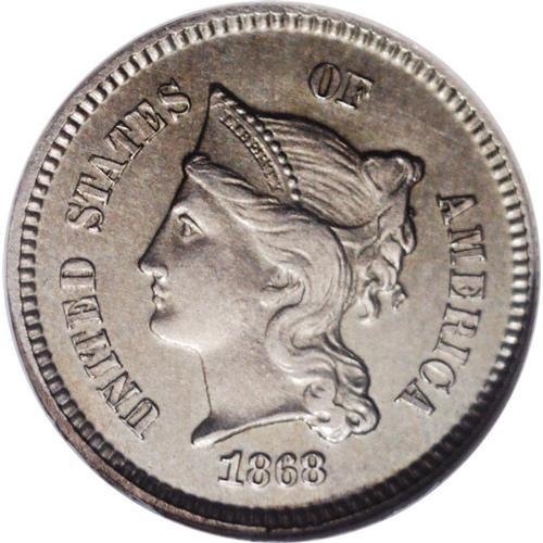 <B>1868<1C> One Cent, Judd-608, Pollock-673, R.4, PR61 NGC.</B></I> Die Variety I. The design closely resembles the adopted three cent nickel, but only a single pillar represents the denomination within the wreath, and the ribbon ends are more prominent. Struck in nickel with a plain edge. This variety (discovered by Harry Bass) is characterized by the date centered in the exergual area, and a die crack from the ES of STATES through the tip of the coronet and on to AMER. Medium gray patina overall with underlying rose and lilac toning. <BR><BR><B>Important notice:</B> Heritage usually auctions material at the rate of 200-250 lots per hour. On some occasions eBay Live bid software or the Internet may not be able to keep up with the pace of the auction. We recommend placing a realistic absentee bid now as insurance to avoid disappointment. Occasionally the auctioneer may eliminate or reject an eBay Live bid, and the auctioneer may also reopen a lot after the close of the eBay live bidding (usually because we missed an audience bid), and may reject your bid even if it shows you as the winning bidder. By bidding via eBay Live, you agree that Heritage may award the lot to another bidder at its sole discretion under the circumstances described above or any other reasonable circumstances. Since eBay bids are not shown to us until we open the lot on the floor, we treat those bids just like floor bids. In most cases the floor responds before the eBay bid is presented to us, due to Internet lag time, so for consistency we have made it a policy that floor bids are always considered first over tie eBay live bids. Also please note that all Heritage lots purchased through eBay Live carry a 20% Buyer's Premium. Please make sure you read the Terms and Conditions before you bid. This lot is being auctioned in conjunction with a live floor auction by Heritage Galleries & Auctioneers. All final auction and invoice information will be supplied by Heritage Galleries & Auctioneers, and all other information should be considered preliminary. Lot:1834 <BR><BR><B>Winning Notification and Billing:</B> After the FINAL session in this auction is complete, Heritage will send e-mail and snail mail invoices. This process normally takes several days. All final auction and invoice information will be supplied by Heritage Galleries & Auctioneers, and all other information should be considered preliminary. <BR><BR>This auction will be conducted on a live auction floor and over the Internet through eBay Live. If you choose to place an absentee bid, please take a moment to <font color='#0000ff'><u><a href='http://pages.ebay.com/liveauctions/help/before/laabsentee.html'>learn how eBay Live absentee bidding works</a></u></font><font color='#000000'>