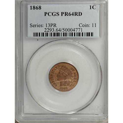 1868 1C PR64 Red PCGS. Crisply struck throughout, with