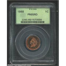 1868 1C PR65 Red PCGS. Full cherry-red luster sparkles over both sides of this carefully preserved,.