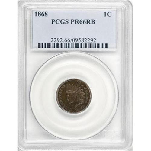 <B>1868 1C PR66 Red and Brown PCGS.</B></I> Slightly mellowed copper-orange clings to the margins, while the centers are rich chocolate-brown with distinct sapphire overtones. Boldly impressed and beautifully preserved. Population: 4 in 66 Red and Brown, 0 finer (10/07).<BR><BR><B>Coin Engraver:</B> James B. Longacre<BR><BR><b>Shipping:</b> Coins & Currency (<a target="_blank" href="http://www.heritageauctions.com/common/shipping.php">view shipping information</a>)