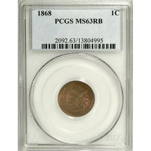 <B>1868 1C MS63 Red and Brown PCGS.</B></I> PCGS Population (82/238). NGC Census: (34/236). Mintage: 10,266,500. Numismedia Wsl. Price for NGC/PCGS coin in MS63: $300. (#2092)<BR><BR><B>Coin Engraver:</B> James B. Longacre<BR><BR><b>Shipping:</b> Coins & Currency (<a target="_blank" href="http://www.heritageauctions.com/common/shipping.php">view shipping information</a>)