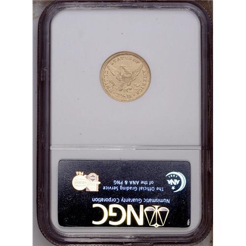 <B>1868 $2 1/2 AU55 NGC.</B></I> Two rust pits (as struck) on Liberty's neck confirm this as one of the 3,600 business strikes coined during the year. A lightly circulated example with good color, muted luster, light wear, and circulation marks consistent with the assigned grade level.