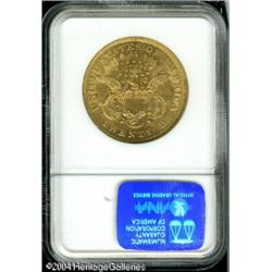 1868 $20 AU50 NGC. A scarce, low mintage issue wit <B>1868 $20 AU50 NGC.</B></I> A scarce, low mintage issue with only 98,600 pieces produced. Surviving examples are usually VF or XF with strict AUs being quite elusive. This bright piece has a good portion of mildly prooflike luster remaining, and is well struck with many small to moderate abrasions peppered across each side. <BR><BR><B>Important notice:</B> Heritage usually auctions material at the rate of 200-250 lots per hour. On some occasions eBay Live bid software or the Internet may not be able to keep up with the pace of the auction. We recommend placing a realistic absentee bid now as insurance to avoid disappointment. Occasionally the auctioneer may eliminate or reject an eBay Live bid, and the auctioneer may also reopen a lot after the close of the eBay live bidding (usually because we missed an audience bid), and may reject your bid even if it shows you as the winning bidder. By bidding via eBay Live, you agree that Heritage may award the lot to another bidder at its sole discretion under the circumstances described above or any other reasonable circumstances. Since eBay bids are not shown to us until we open the lot on the floor, we treat those bids just like floor bids. In most cases the floor responds before the eBay bid is presented to us, due to Internet lag time, so for consistency we have made it a policy that floor bids are always considered first over tie eBay live bids. Also please note that all Heritage lots purchased through eBay Live carry a 20% Buyer's Premium. Please make sure you read the Terms and Conditions before you bid. This lot is being auctioned in conjunction with a live floor auction by Heritage Galleries & Auctioneers. All final auction and invoice information will be supplied by Heritage Galleries & Auctioneers, and all other information should be considered preliminary. Lot:6860