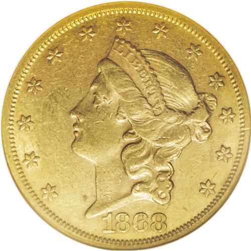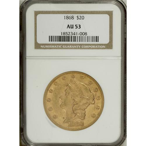 1868 $20 AU53 NGC. With a low mintage of just 98, 575