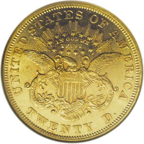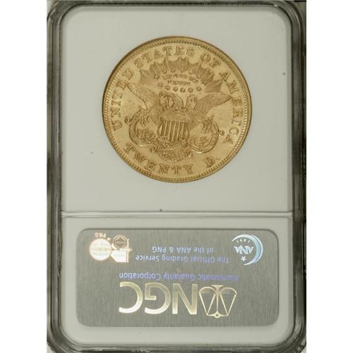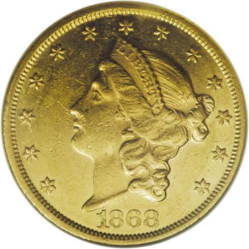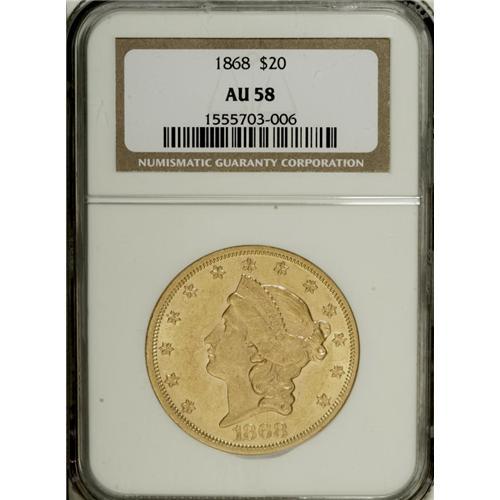 1868 $20 AU58 NGC. The 1868 double eagle, with a minta