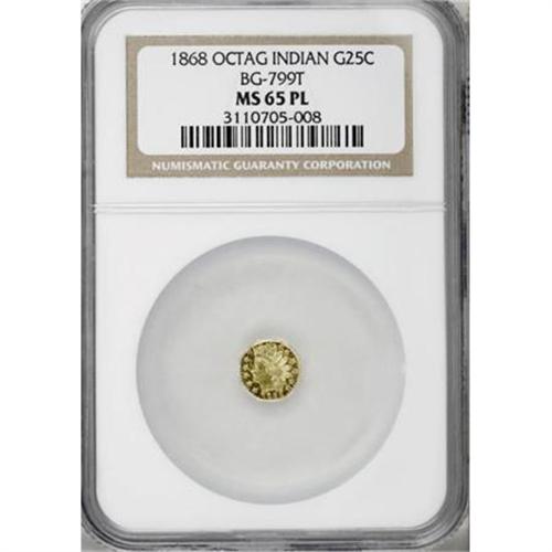 1868 25C Indian Octagonal, BG-799T MS65 PL NGC