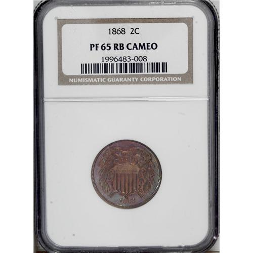 1868 2C Cameo PR65 Red and Brown NGC. Original reddish