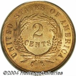 <table><tr><td><table><tr><td>1868 2C MS65 Red PCGS. Much scarcer than the first two years of this unusual denomination with full red color and in Gem condition. This piece has uncommonly strong details on each side, and the surfaces are a light red with much original orange-red coloration in the center of the obverse. An extraordinarily pleasing example of this more challenging date in the two cent series and one that may realize an equally impressive price when sold at auction. Population: 11 in 65, 3 finer (2/04).From the Pleasant Valley Collection. <BR><BR><B>Important notice:</B> Heritage usually auctions material at the rate of 200-250 lots per hour. On some occasions eBay Live bid software or the Internet may not be able to keep up with the pace of the auction. We recommend placing a realistic absentee bid now as insurance to avoid disappointment. Occasionally the auctioneer may eliminate or reject an eBay Live bid, and the auctioneer may also reopen a lot after the close of the eBay live bidding (usually because we missed an audience bid), and may reject your bid even if it shows you as the winning bidder. By bidding via eBay Live, you agree that Heritage may award the lot to another bidder at its sole discretion under the circumstances described above or any other reasonable circumstances. Since eBay bids are not shown to us until we open the lot on the floor, we treat those bids just like floor bids. In most cases the floor responds before the eBay bid is presented to us, due to Internet lag time, so for consistency we have made it a policy that floor bids are always considered first over tie eBay live bids. Also please note that all Heritage lots purchased through eBay Live carry a 20% Buyer's Premium. Please make sure you read the Terms and Conditions before you bid. <BR><BR><B>IMPORTANT ANNOUNCEMENT ABOUT RESERVES:</B> Heritage now divulges all reserves on its web site 7 days before every auction. If you want to know whether the reserve on this lot has been met, and if not, what the reserve amount is, please visit this lot page on the HeritageCoin.com web site, or email: bid@HeritageGalleries.com </span></font></td></tr></table></td></tr></table>