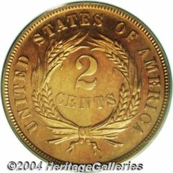 <table><tr><td><table><tr><td>1868 2C PR65 Red Cameo PCGS. Both sides exhibit solid mirrored reflectivity, held back to a small degree by milky orange-gold patina, and the lightly frosted devices yield modest contrast. A challenging Two Cent issue with the Cameo designation. Population: 1 in 65 Cameo, 1 finer (2/04). <BR><BR><B>Important notice:</B> Heritage usually auctions material at the rate of 200-250 lots per hour. On some occasions eBay Live bid software or the Internet may not be able to keep up with the pace of the auction. We recommend placing a realistic absentee bid now as insurance to avoid disappointment. Occasionally the auctioneer may eliminate or reject an eBay Live bid, and the auctioneer may also reopen a lot after the close of the eBay live bidding (usually because we missed an audience bid), and may reject your bid even if it shows you as the winning bidder. By bidding via eBay Live, you agree that Heritage may award the lot to another bidder at its sole discretion under the circumstances described above or any other reasonable circumstances. Since eBay bids are not shown to us until we open the lot on the floor, we treat those bids just like floor bids. In most cases the floor responds before the eBay bid is presented to us, due to Internet lag time, so for consistency we have made it a policy that floor bids are always considered first over tie eBay live bids. Also please note that all Heritage lots purchased through eBay Live carry a 20% Buyer's Premium. Please make sure you read the Terms and Conditions before you bid. <BR><BR><B>IMPORTANT ANNOUNCEMENT ABOUT RESERVES:</B> Heritage now divulges all reserves on its web site 7 days before every auction. If you want to know whether the reserve on this lot has been met, and if not, what the reserve amount is, please visit this lot page on the HeritageCoin.com web site, or email: bid@HeritageGalleries.com </span></font></td></tr></table></td></tr></table>