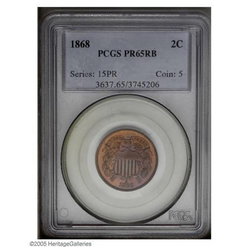 1868 2C PR65 Red and Brown PCGS. A mix of crimson, ora 1868[2C] PR65 Red and Brown PCGS.
