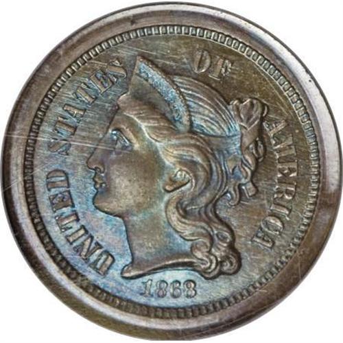 1868 3C Three Cent Nickel, Judd-616,