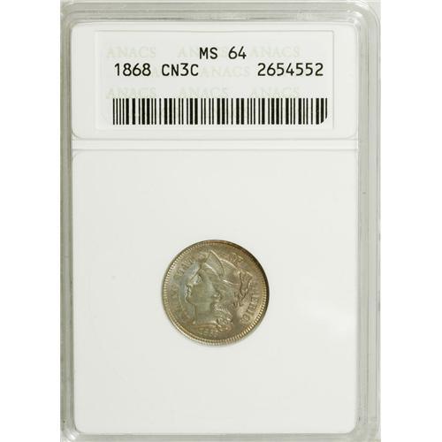 1868 3CN MS64 ANACS. NGC Census: (155/66). PCGS Po