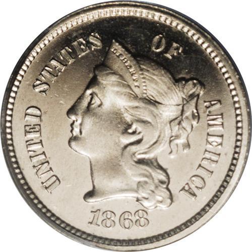 1868 3CN Three Cent Nickel, Judd-618, Pollock-687, R.4