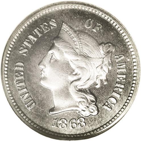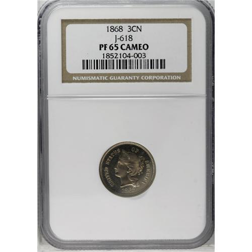 1868 3CN Three Cents, Judd-618, Pollock-687, R.4, PR65 1868