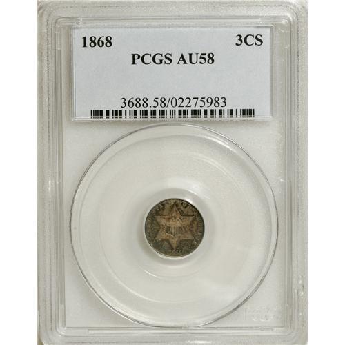 1868 3CS AU58 PCGS. A briefly circulated survivor that