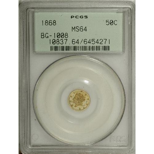 1868 50C Liberty Round 50 Cents, BG-1008, R.5, MS64 PC