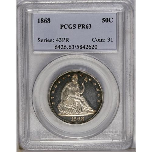1868 50C PR63 PCGS. A beautiful, proof example with or