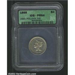 1868 5C Five Cents, Judd-633, Pollock-704, 705, R.6, PR 64 ICG.